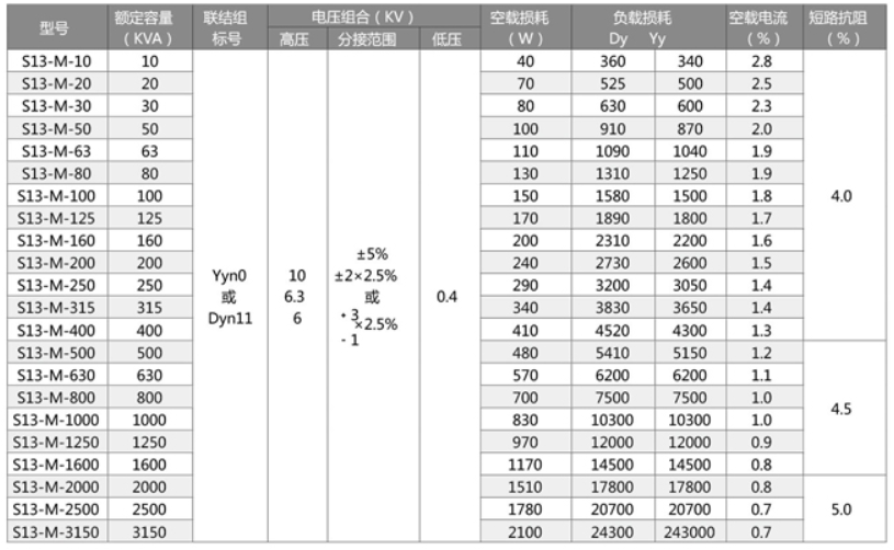 S13型是我公司在原S11型配電變壓器基礎(chǔ)上,通過新材料、新工藝的研究運(yùn)用及自主創(chuàng)新與技術(shù)引進(jìn)結(jié)合的方式,通過對鐵芯及線圈結(jié)構(gòu)的優(yōu)化創(chuàng)新設(shè)計(jì),達(dá)到降低空載損耗及噪聲的目的。自主開發(fā)的產(chǎn)品空載損耗平均下降了37%。噪聲水平與現(xiàn)行國標(biāo)JB/T10088—2004比較平均下降20%,產(chǎn)品性能水平達(dá)到國內(nèi)先進(jìn)水平。執(zhí)行標(biāo)準(zhǔn)如下: